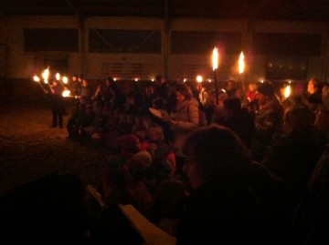 Den krönenden Abschluss machte der Nikolaus, welcher mit weihnachtlichen Liedern begrüßt wurde und auf einem Pferd herreingeritten kam. In der mit Fackeln beleuchteten Runde verteilte der Nikolaus die Geschenke an die Kinder.
